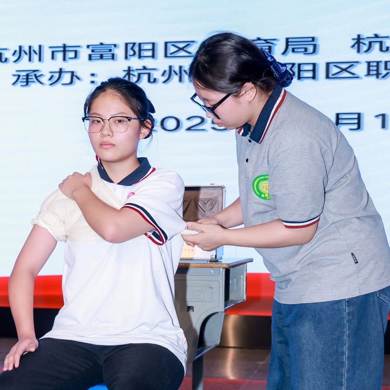 2025年10月16日,杭州市富阳区职业教育中心迎来了一场生命与技能的较量——富阳区红十字应急救护知识与技能竞赛隆重举行。全区中小学52支代表队齐聚一堂,在应急救护的赛场上展现出了专业的救护技能与无私的人文关怀。