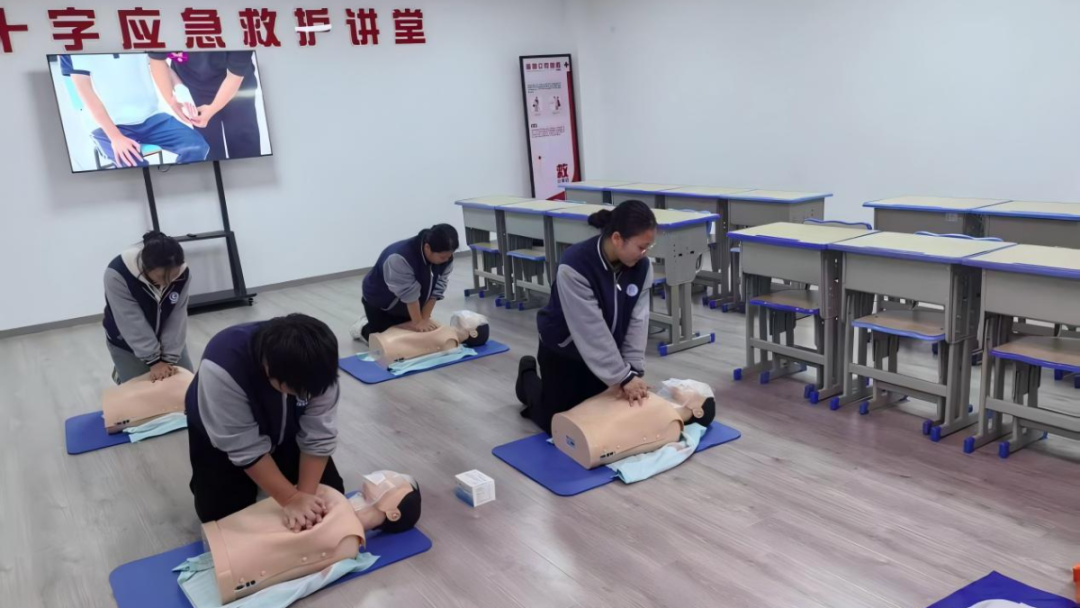 整个校园洋溢着浓厚的红十字应急救护学习氛围。