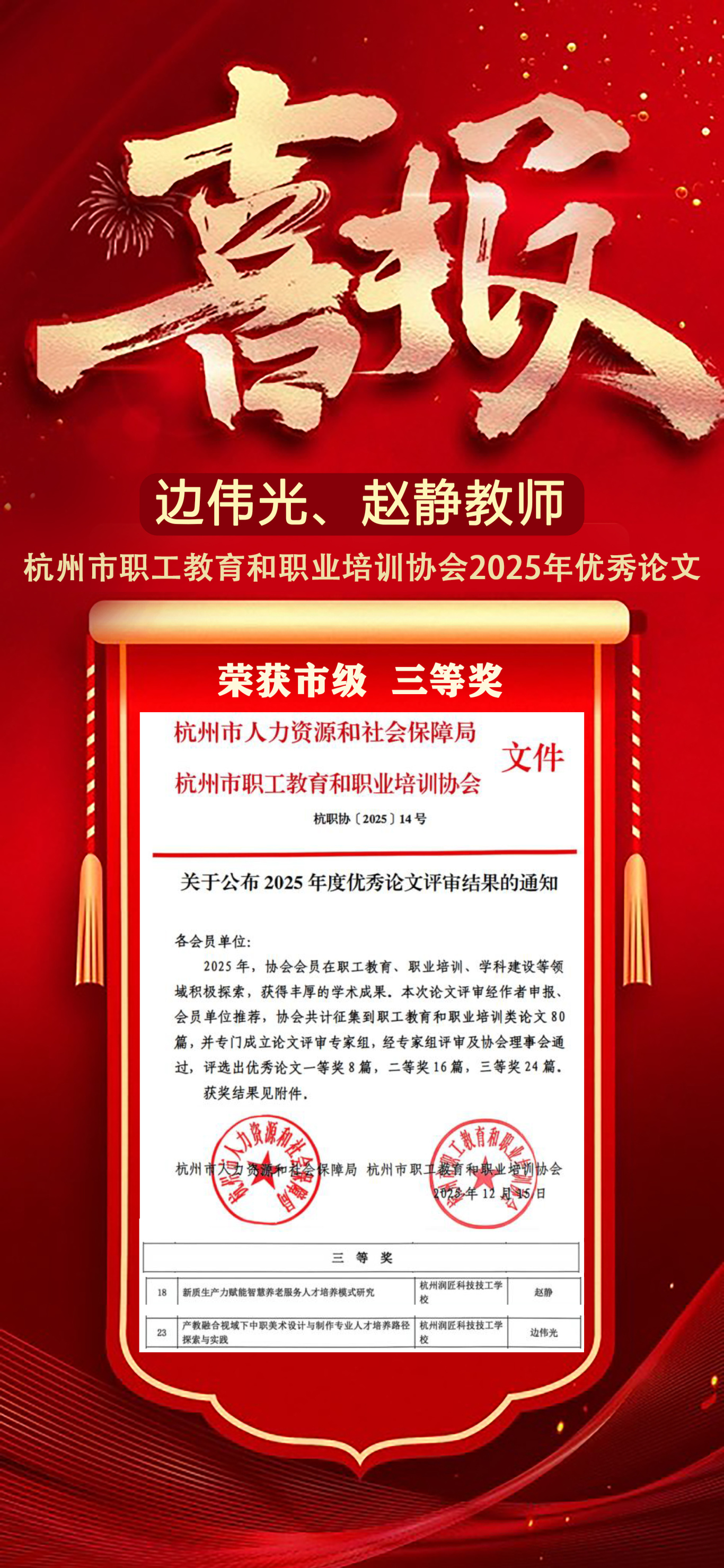 喜报 | 邱爽、边伟光、赵静等教师荣获杭州市2025年优秀论文奖